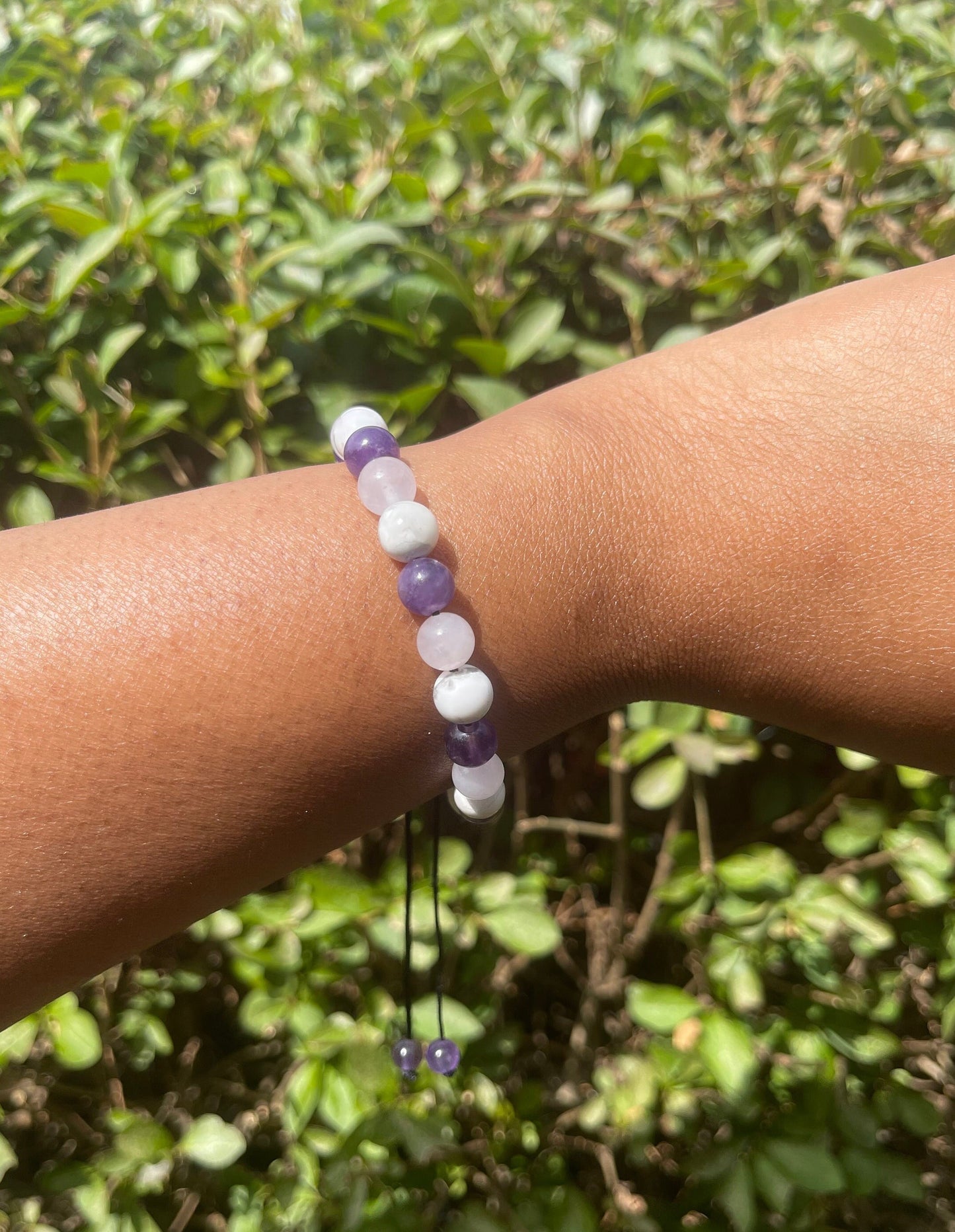 Anxiety Bracelet Adjustable Bracelet, Chakra Protection Bracelet, Gemstones Inner Peace, Healing Crystals, Self Love, Rose Quartz, Amethyst
